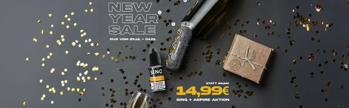 Starten Sie perfekt ins neue Jahr! Mit unserem exklusiven New Year Bundle kombinieren wir das technologisch ausgereifte Aspire Pixo Aura Pod Kit mit den intensiven SINQ Nic-Salt Liquids zum unschlagbaren Aktionspreis.